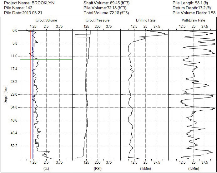El registro de la instalación puede ser impreso al final de la ejecución de cada pilote por una pequeña impresora de campo instalada en la cabina de la grúa. Una vez transferidos los datos para una computadora, el Software PIR-PLOT hace analices adicionales, y imprime relatos de la instalación y de productividad, y gráficos de los parámetros más importantes versus profundidad.