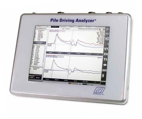El Analizador de Hincado de Pilotes PDA es el sistema más utilizado para Análisis de Hincado de Pilotes y Prueba de Carga Dinámica en el mundo. El PDA puede evaluar la capacidad de carga de muchos elementos de fundación en un solo día. También evalúa la integridad del fuste e investiga los esfuerzos en el material y la energía del martillo durante la instalación de pilotes hincados. Si usted planea probar pilotes no hincados, asegúrese de leer sobre esta aplicación también.