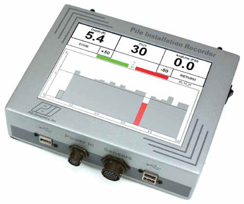 Los parámetros clave para una instalación precisa son el volumen bombeado de lechada u hormigón (concreto), y la profundidad de la barrena. El PIR registra y exhibe ambos con precisión en tiempo real. El equipo consiste de una unidad principal instalada en la cabina de la grúa, un dispositivo para medir la profundidad, un medidor magnético de flujoFoxboro y un transductor de presión para medir la fuerza de torsión en la barrena y un dispositivo para medir las rotaciones de la barrena1. El PIR-Viewer y el Analizador de Ángulos, un dispositivo que mide el ángulo de instalación del pilote, son accesorios opcionales.