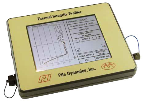 El Analizador Térmico de Integridad de Pilotes (TIP) hace uso del calor generado durante el fragüe del hormigón para evaluar la calidad de fustes en pilas. Él también puede ser usado para control de calidad y evaluación de la forma de columnas de jet grouting, muros pantalla y paredes diafragma. El TIP permite evaluar completamente toda la sección transversal y toda la longitud de la cimentación. Los resultados están disponibles poco después de concluir la instalación del pilote: el TIP revela estrechamientos e inclusiones (regiones más frias que el promedio), protuberancias (regiones más calientes que el promedio), variaciones en el recubrimiento de hormigón, la forma del fuste y la alineación de armadura.
